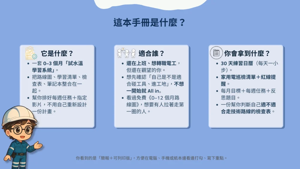 《轉職電工入門包:0–3 個月行動手冊》是什麼?